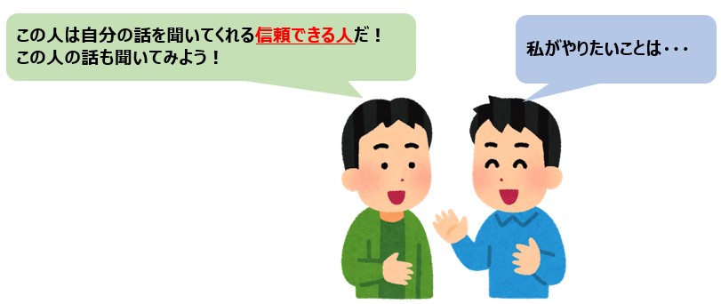 人は誰でも話を聞いてくれると嬉しいですし、**信頼感も上がります。**信頼できる人の話は、聞いてみたいと思いますし、理解しようともしてくれます。