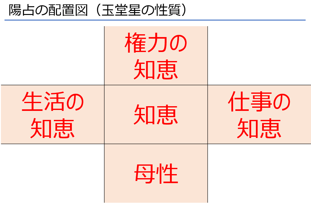 このページでは**「玉堂星」**が陽占の中のどの場所に現れるかによってどんな違いがあるのかを見ていきます。