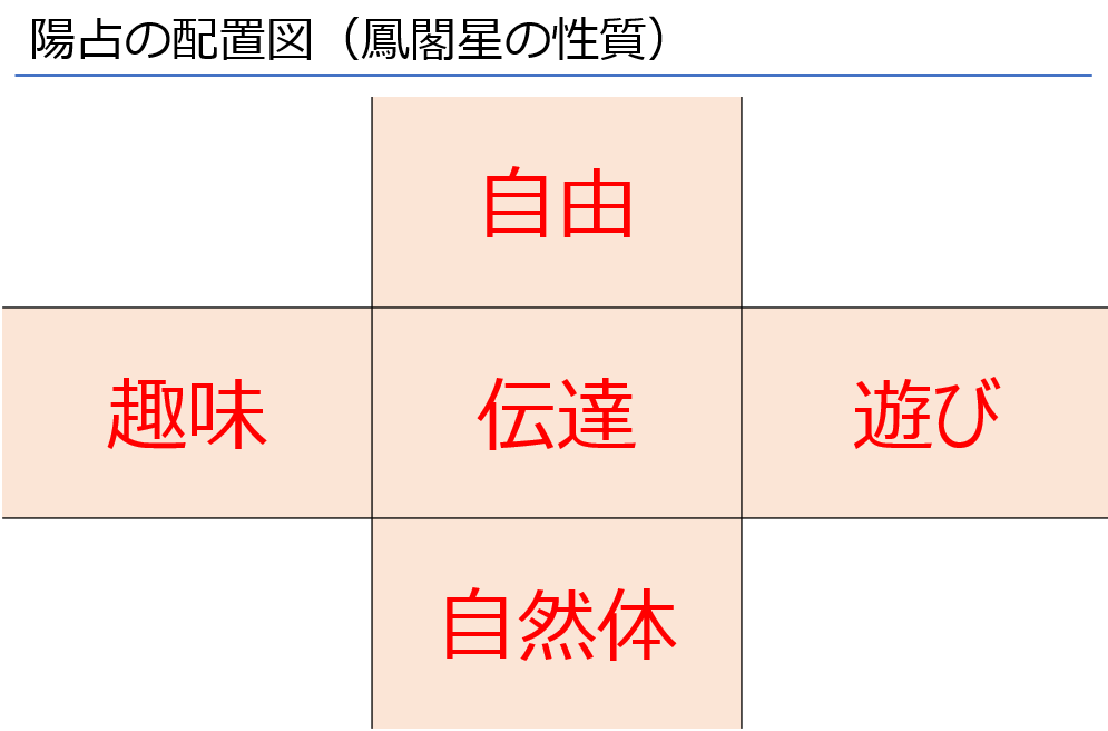 このページでは**「鳳閣星」**が陽占の中のどの場所に現れるかによってどんな違いがあるのかを見ていきます。