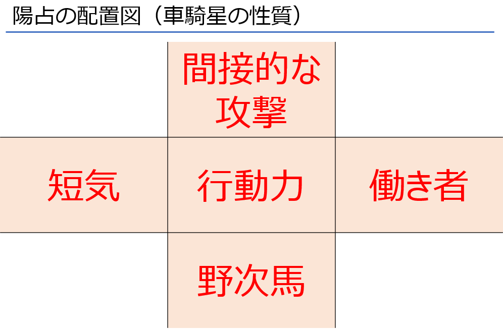 この性質を「車騎星」に当てはめると、以下のようになります。